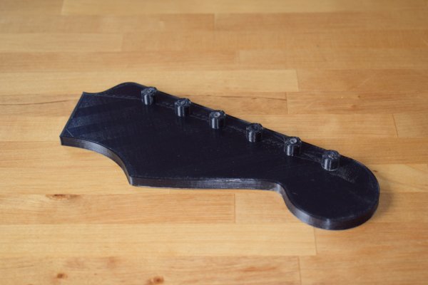 Die Seite des Gitarrenkorpus sollen in einem elfenbeinfarbenen Weißton erhalten, eine passende Spraydose fand sich im Baumarkt. Um beim Sprayen die Dose besser führen zu können und hoffentlich ein möglichst saubern Lackauftrag zu erhalten, wird ein Spraydosenhalter aus dem 3D-Drucker (Anycubic i3 Mega, ausgebaut zum Mega S) verwendet.